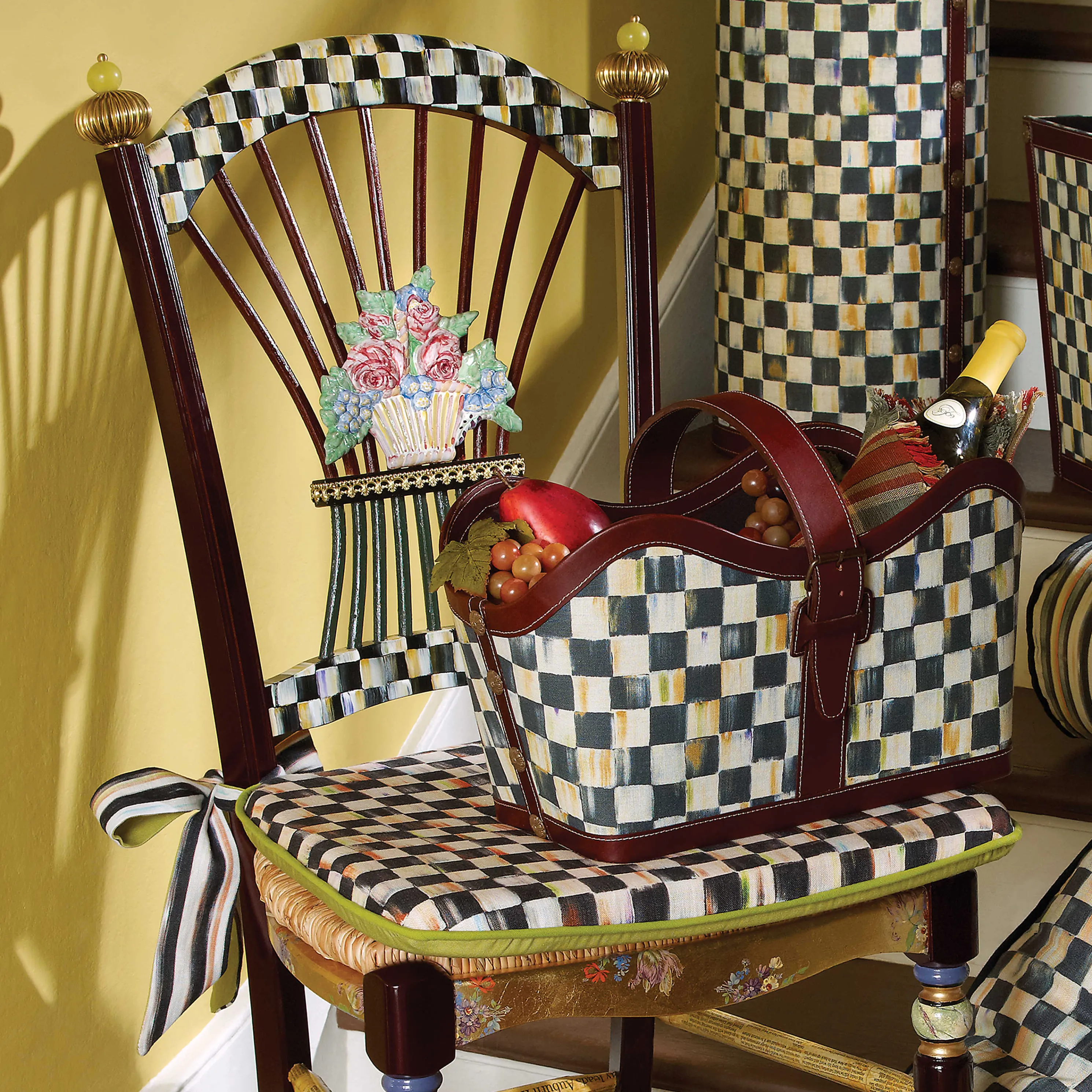 Courtly Check® Cotton/Linen Blend Fabric On One Side, Apple Green On The Other. Courtly Stripe Seat Ties.