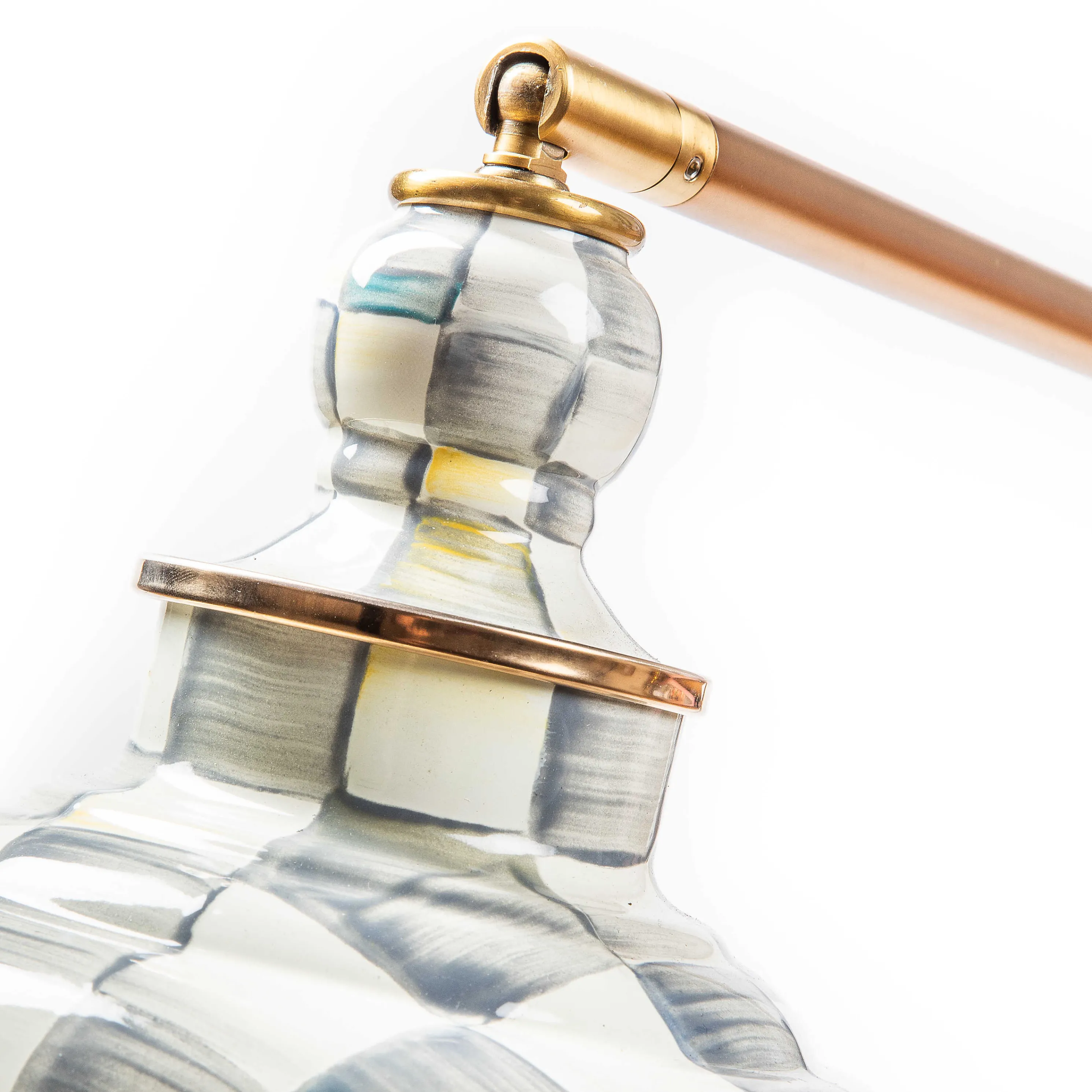 The Sterling Check Reading Floor Lamp Is Our Take On A Timeless Lighting Silhouette, Done In Enamel And Brass And Hand-Painted With Our Color-Dragged Grey Checks. The Adjustable Arm Can Vary The Height And Angle Of The Light. Use With An Edison Bulb For A Look That’S Especially Enlightening.