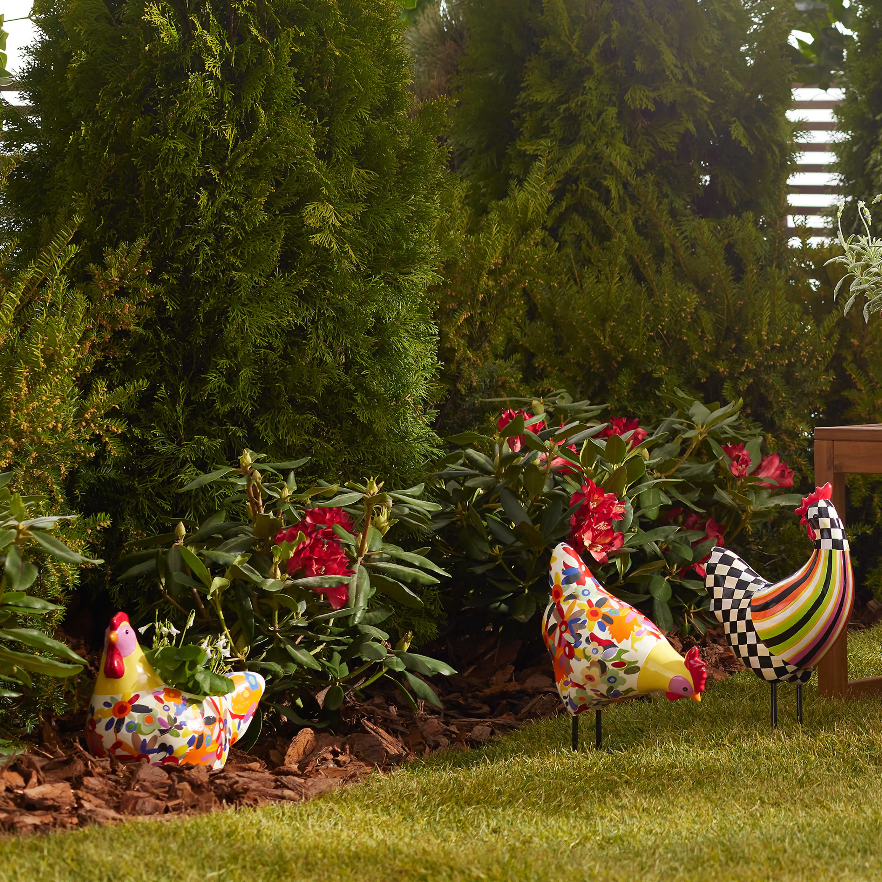 Display Your Plants With Mackenzie-Childs Style In Our Floral Avant Garden Chicken Planter. This Weather-Resistant Resin Planter, Decorated With Florals, Includes An Accompanying Plastic Insert For A Plant.