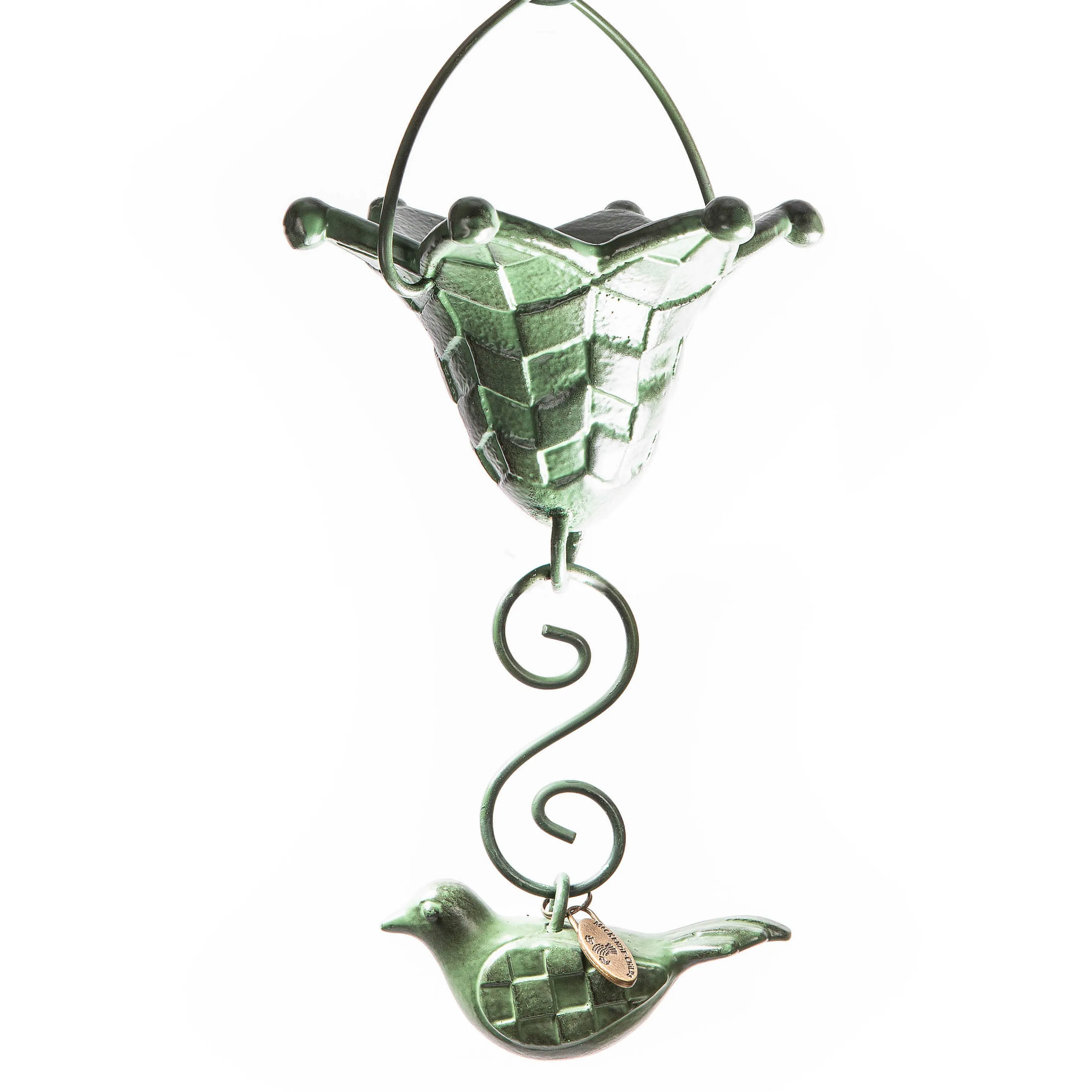 Relax To The Soothing Sensation Of The Avant Garden Rain Chain. A Series Of Verdigris Cast-Aluminum Flowers, Suspended By Stainless-Steel Chains, Catch Water In A Cascading Waterfall. It’S Accented With A Bird On The Bottom.