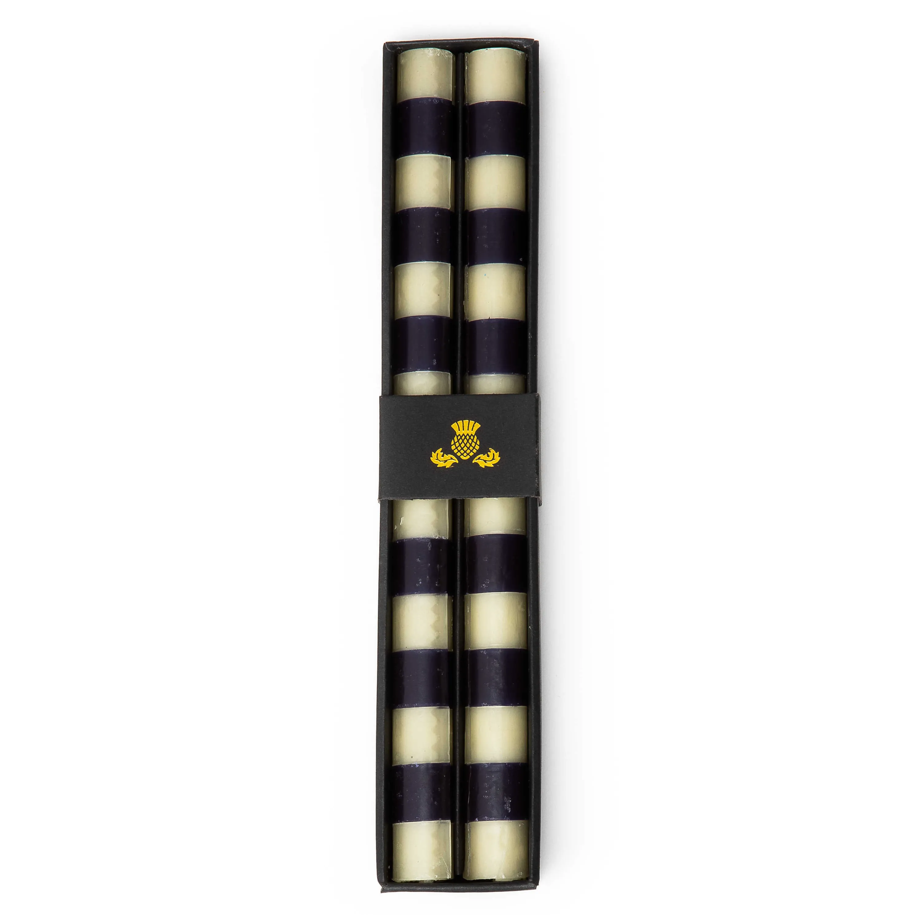 Turn Your Everyday Meals Into Something More Memorable With Our Navy Bands Dinner Candles. This Set Of Two Beeswax-Blend Candles, Featuring Horizontal Bands, Adds The Glowing Touch Of Mackenzie-Childs To Your Dining Table.