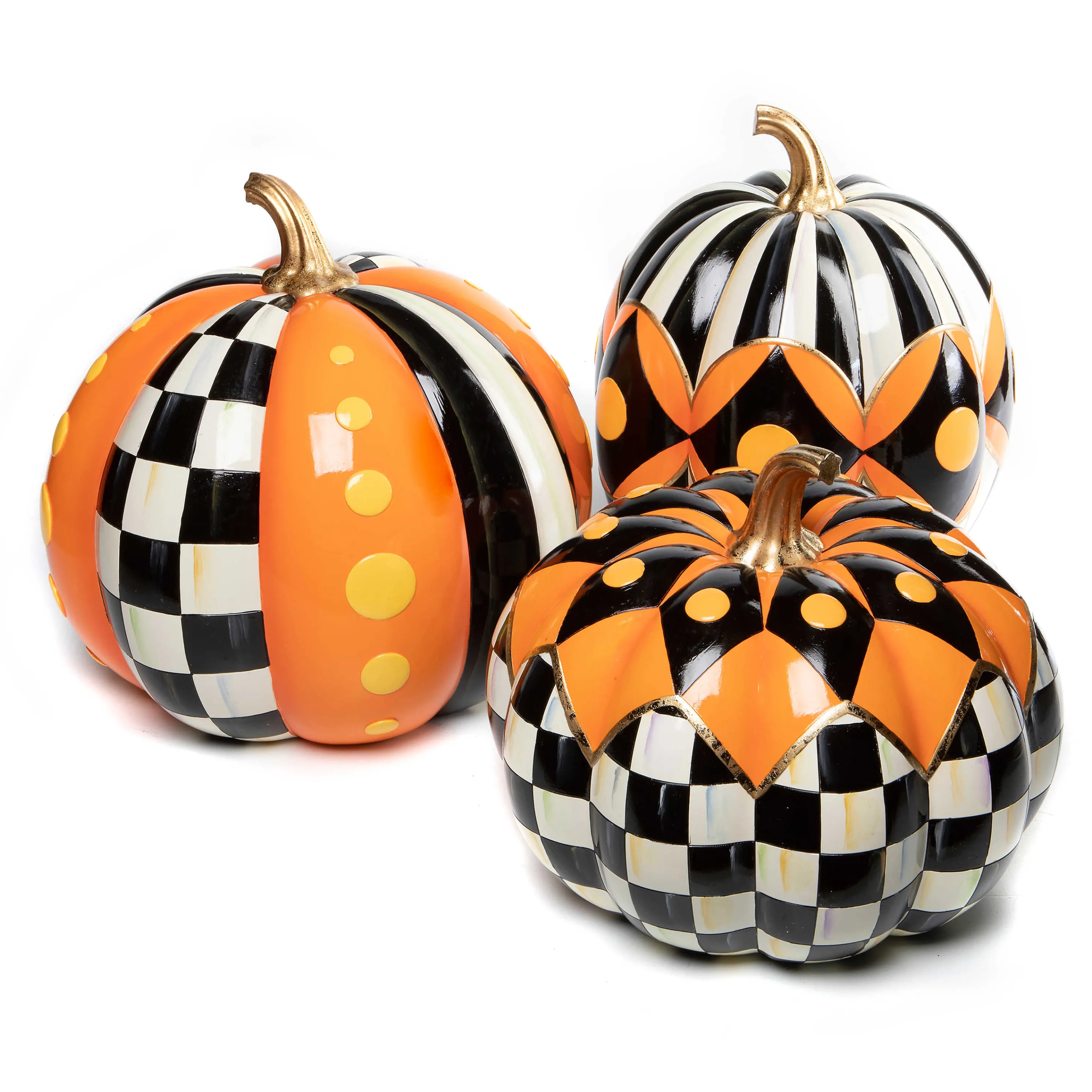 Take Your Pick From Our Most Unusual Pumpkin Patch. The Hand-Painted Boo Courtly Check® Pumpkin Features A Fun Design Done In Candy Corn Colors On Top And Courtly Check On The Bottom, Topped With A Glitzy Golden Stem.