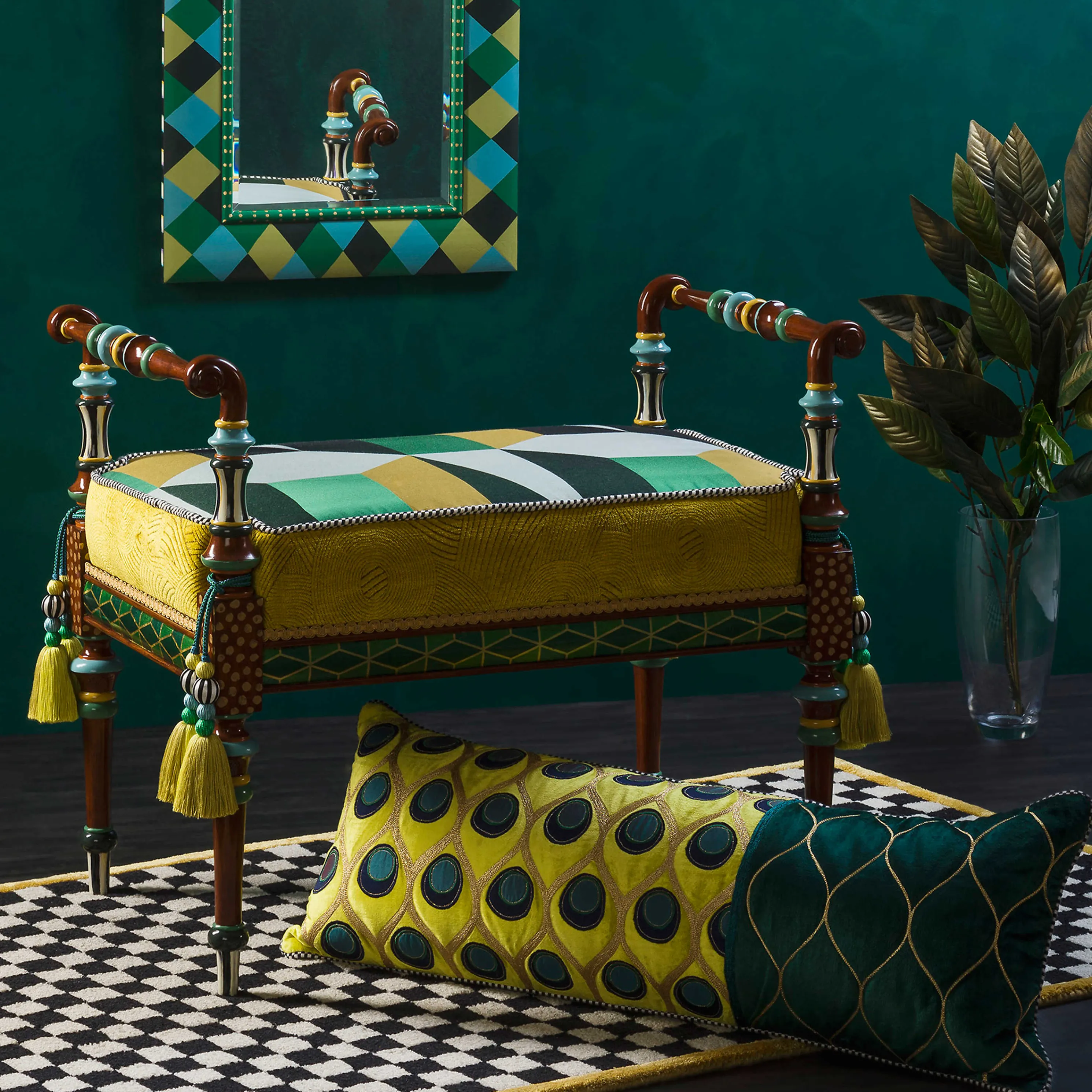 The 3′ × 5′ Gold Check It Out Rug Is The Perfect Check Mate To So Many Of Our Collections. This Wool-Blend Rug Has A Center Of Hooked Black And White Checks With A Gold Tufted Border.