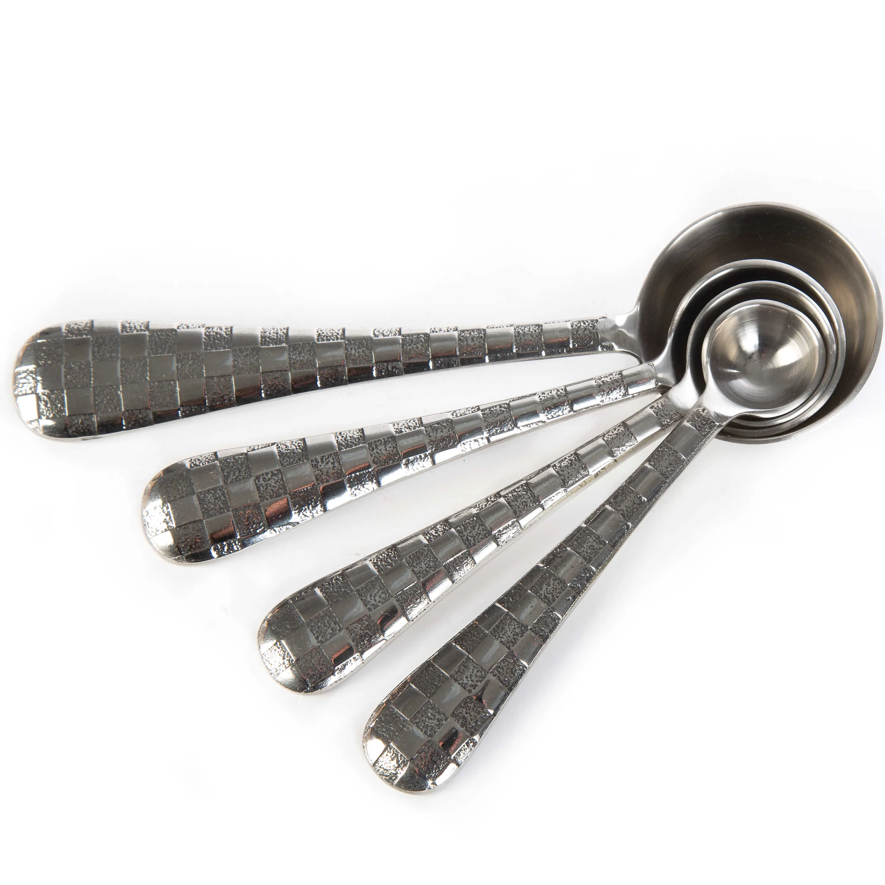 A Helpful Hand In The Kitchen, Our Stainless-Steel Check Measuring Spoons Make Cooking And Baking A Breeze. This Set Of Four Spoons Holds Amounts That Include One Tablespoon, One Teaspoon, Half Teaspoon, And Quarter Teaspoon.