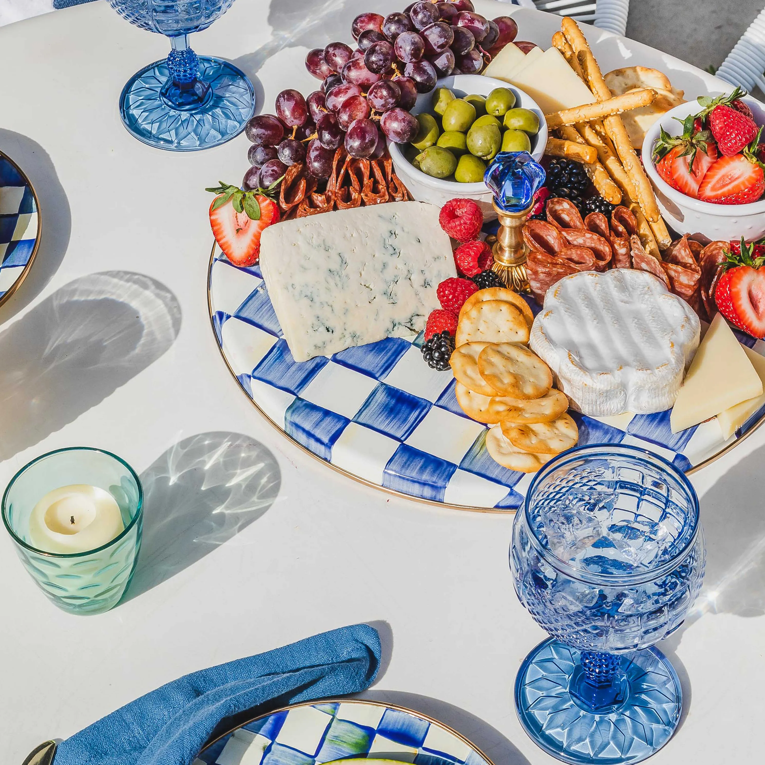 Everyday Dining Is Extraordinary With The Coquette Collection Of Glassware. The Blue Coquette Goblet Is Mouth-Blown And Molded With A Pattern Of Diamonds, Checks, And Dots, With Our Thistle Logo Etched On The Bottom. Mix And Match The Goblet With The Other Colors In The Coquette Collection And Pair It With Our Colorful Dinnerware.