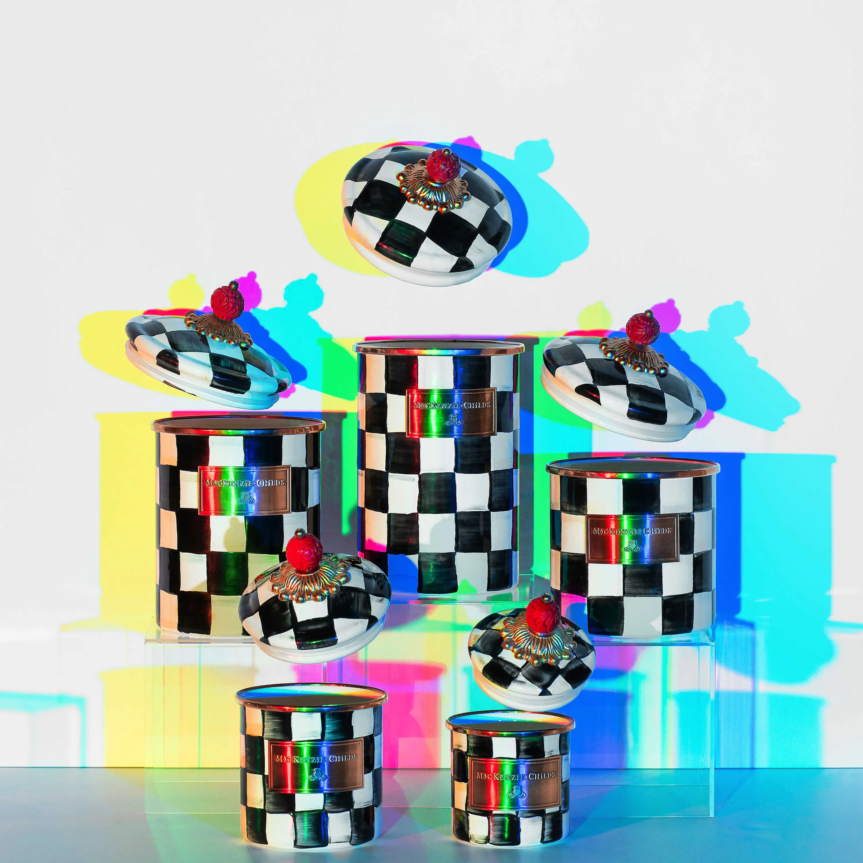 Add To The Endless Possibilities For Our Canisters With The Demi Courtly Check® Enamel Canister. A Step Up From Our Smallest Sized Canister, The Demi Stands Handsomely Alone Or Harmonizes Delightfully In A Set. Keep It In The Kitchen Or Invent New Uses Around The House. It’S Perfect For Cotton Balls And Swabs In The Bathroom, Pens And Pencils In The Office, Or Knickknacks And Doodads In The Kids’ Room. Each Enameled Steel Canister Is Hand-Painted With Black And White Courtly Checks® And Topped With A Faux Cinnabar Bead Knob.