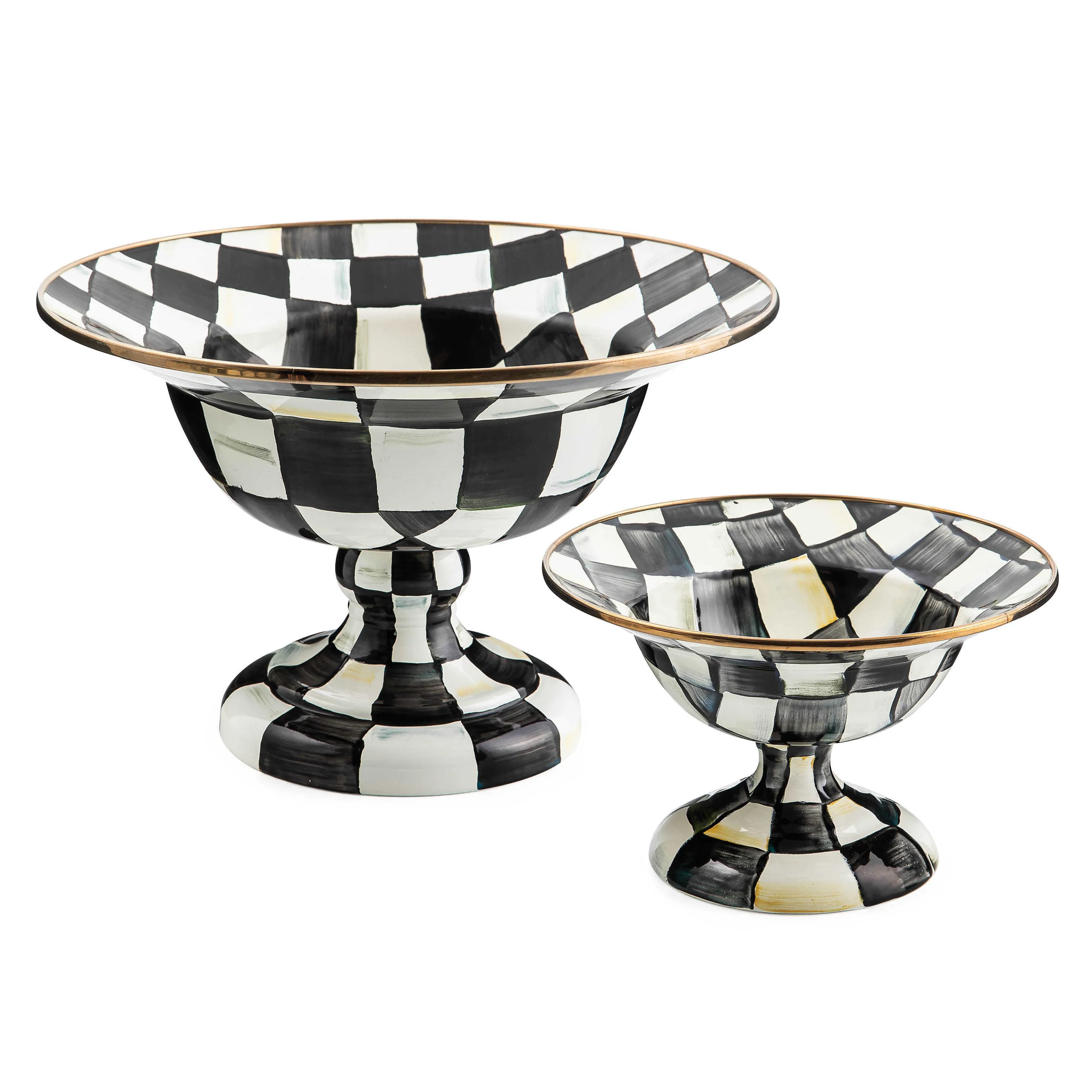 An Indispensable Party Serving Dish, The Large Courtly Check Compote Is Decorated With Our Signature Hand-Painted Checks. It Has A Steel Underbody And Bronzed Stainless-Steel Rim.