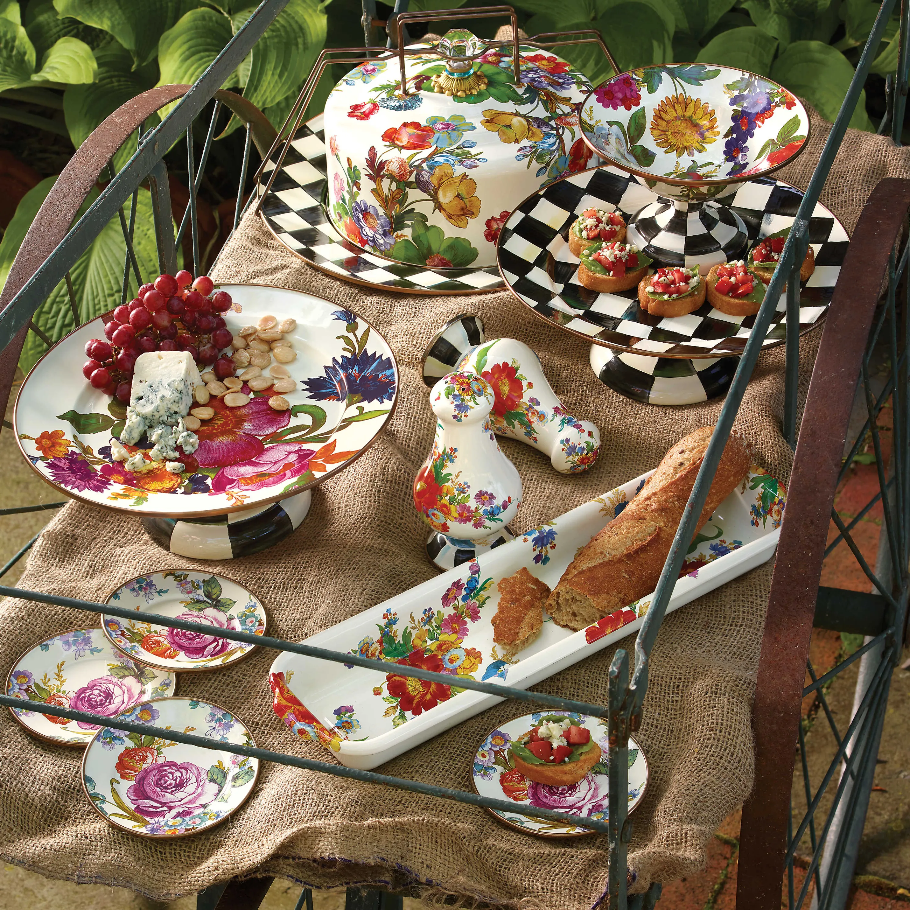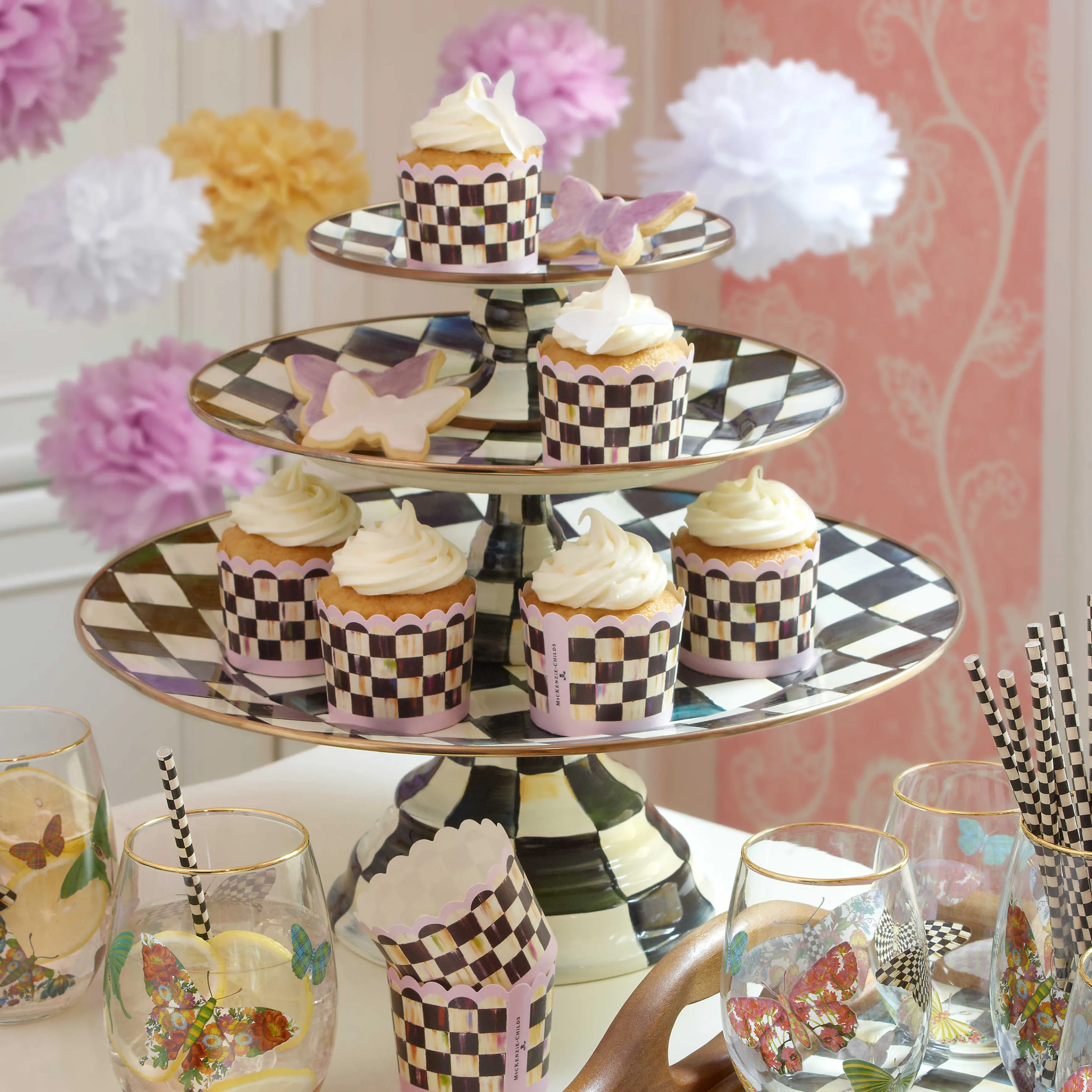 The Center Of Attention At Every Gathering, Whether Empty Or Piled High With Petite Cupcakes. Hand-Painted Checks Reveal A Spectrum Of Accent Colors. Steel Underbody And Bronzed Stainless Steel Rim.