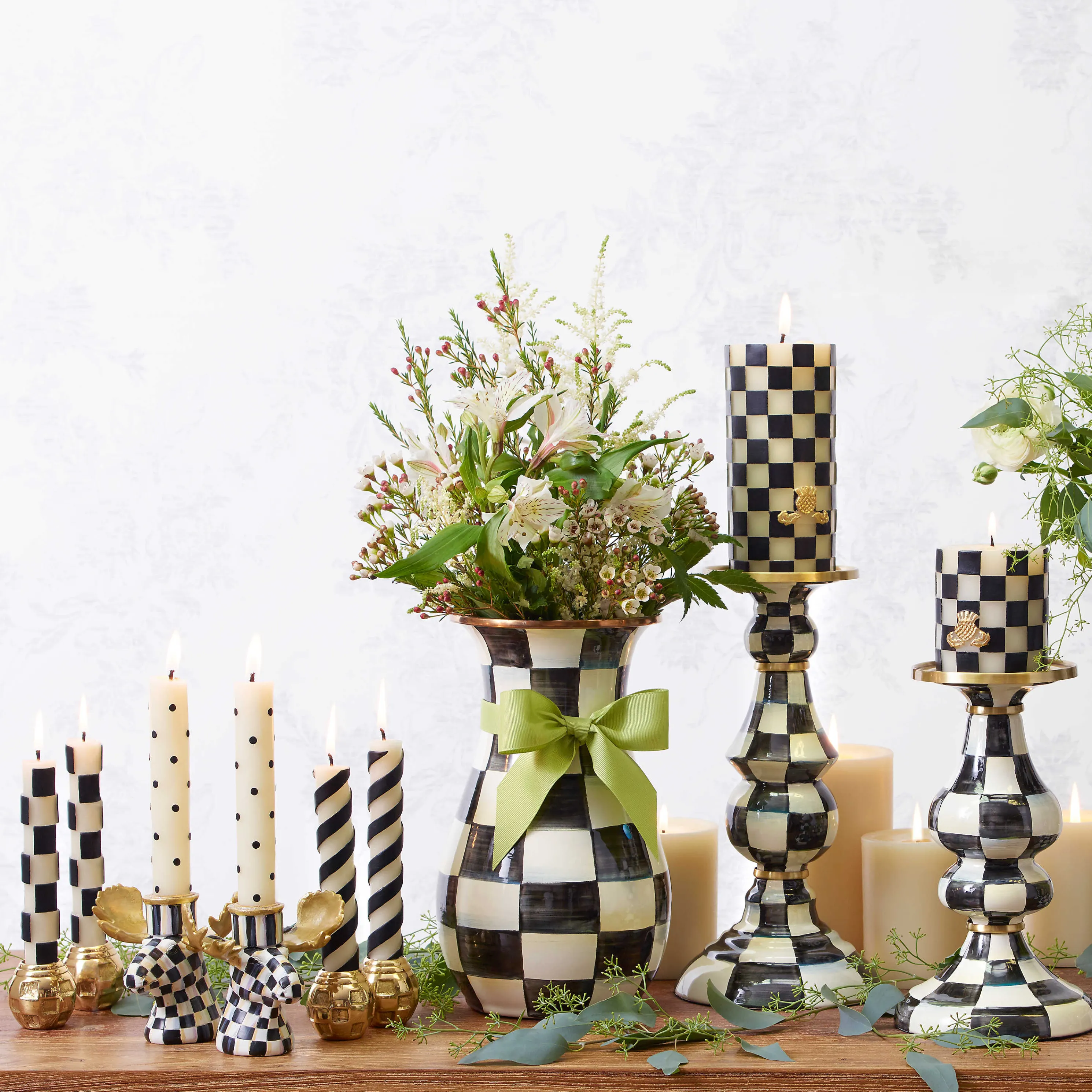 Make An Enlightening Statement Of Style By Displaying Your Pillar Candles On Our Medium Courtly Check® Enamel Pillar Candlestick. Made Of A Heavy-Gauge, Hand-Glazed Steel Underbody With Hand-Painted Courtly Checks®, It’S Embellished With Brass Accents And Rimmed In Bronzed Stainless Steel.