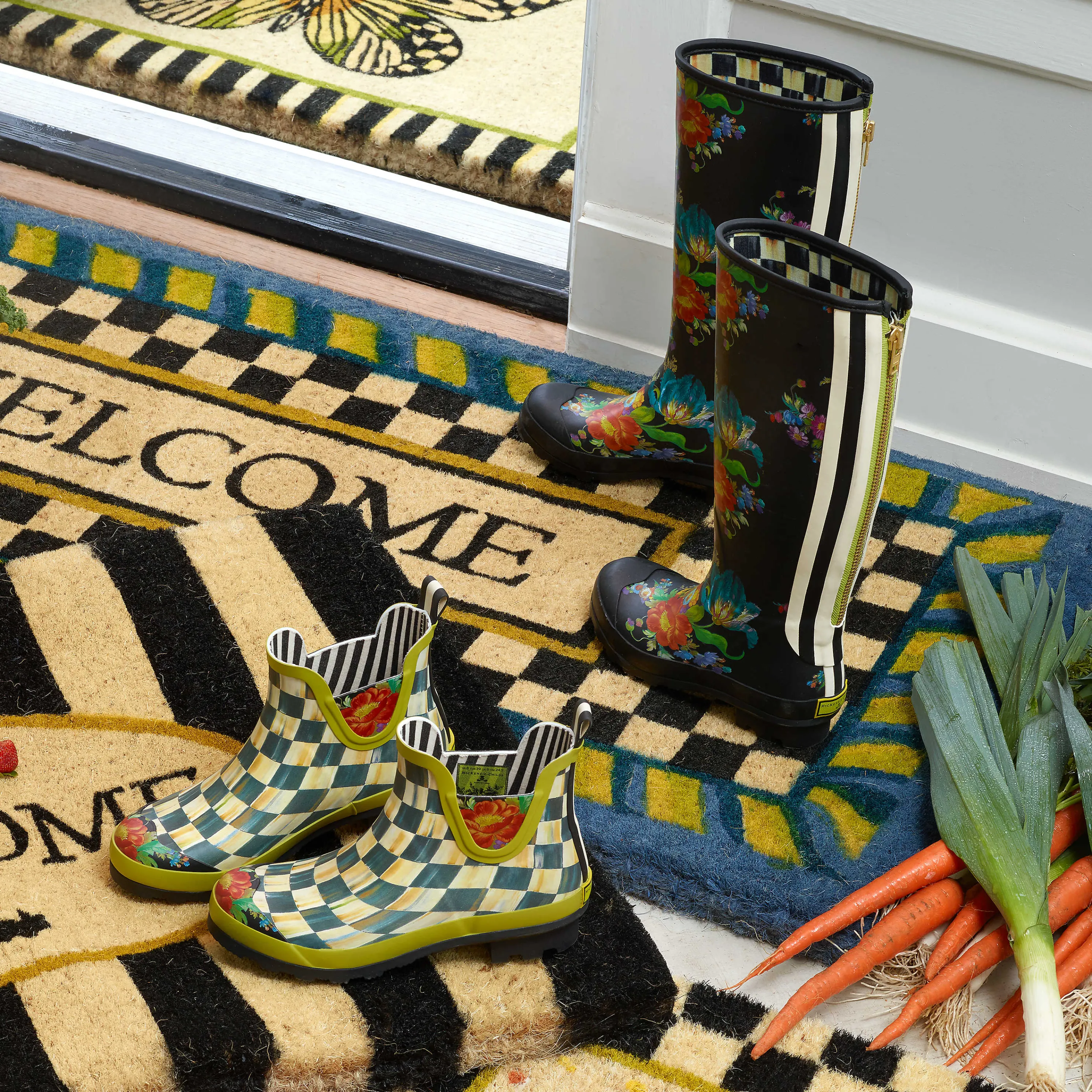 Adventure Awaits, Whether You’Re In The Garden Or On The Go, Traveling All Kinds Of Terrains. With Our Size 9 Short Courtly Check® Rain Boots, You’Ll Kick Up Your Heels In Style. They’Re The Perfect Pairing Of Fashion And Function And Are Decorated With Our Courtly Check® And Flower Market Patterns On The Outside And Black And White Stripe On The Inside. Made Of Premium Rubber With Slip-Resistant Soles And A Moisture-Wicking Lining, They Easily Pull On And Off, Thanks To A Sturdy Tab On The Back.
