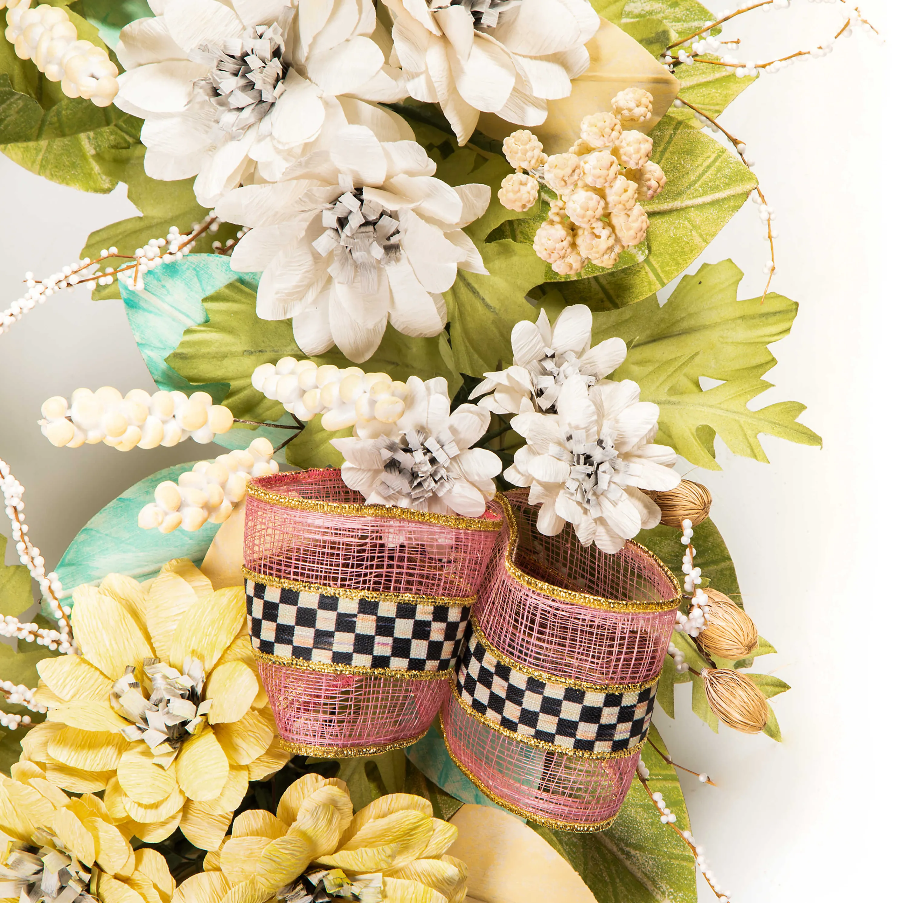 The Morning Mist Wreath Says Spring Has Sprung. Featuring Everlasting Pastel Paper Florals On A Backdrop Of Leaves And Natural Branches, It’S Embellished With Courtly Check® And Courtly Check Sinamay Ribbon. Hang This In A Protected Location.