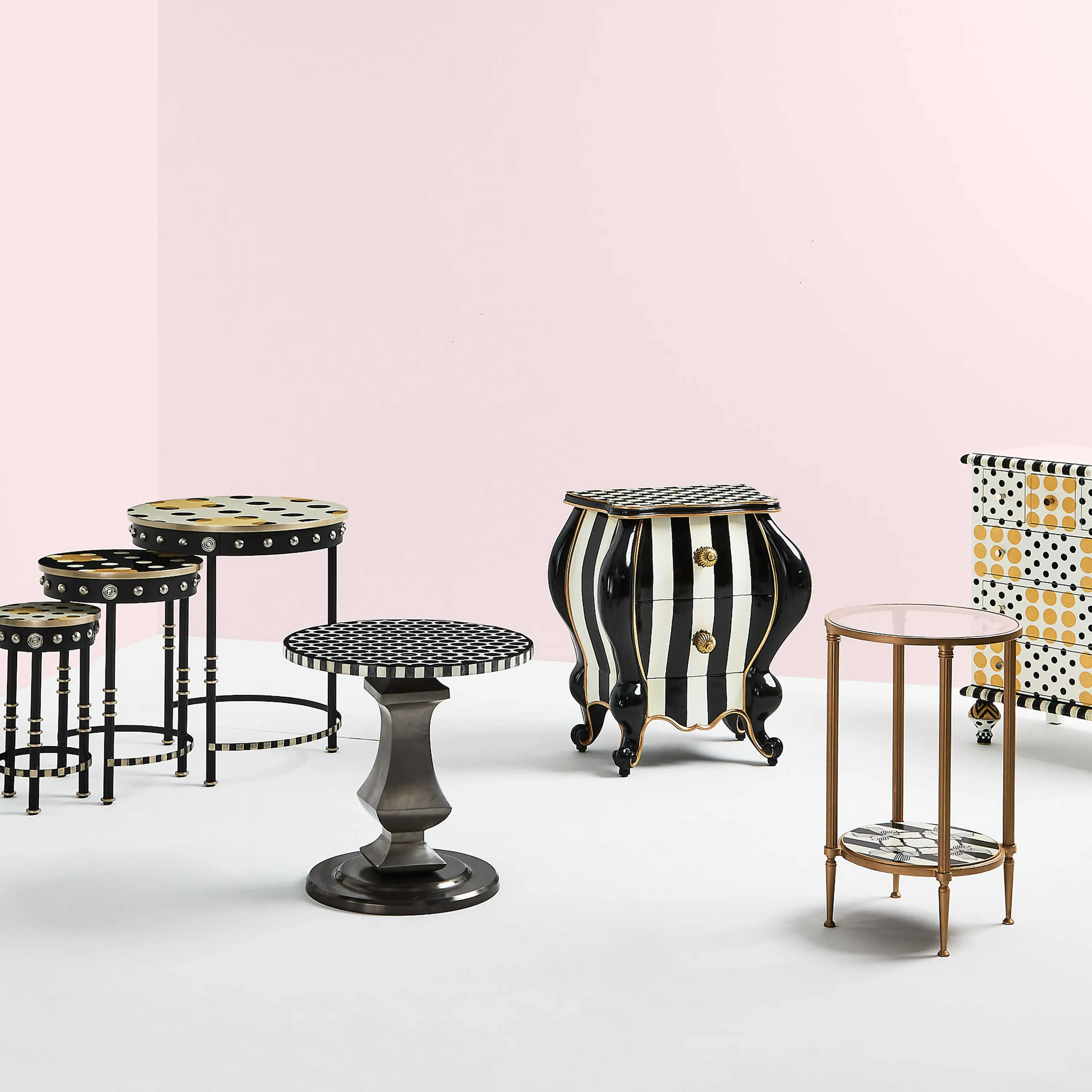 Unwrap The Delightful Details Of Our Pretty As A Bow Accent Table. Its Brass-Finish Iron Frame Is Topped With Clear Tempered Glass And Decorated With The Embossed, Hand-Painted Pretty As A Bow Pattern On The Shelf Below. It Makes Quite A Statement, And It’S Just The Right Size For Parking A Book Or Cup Of Tea.