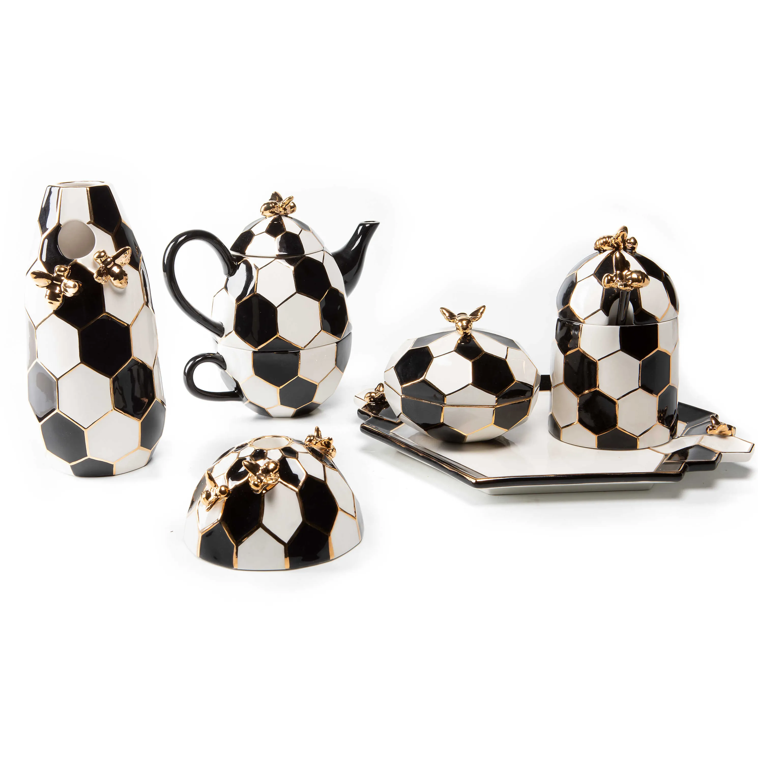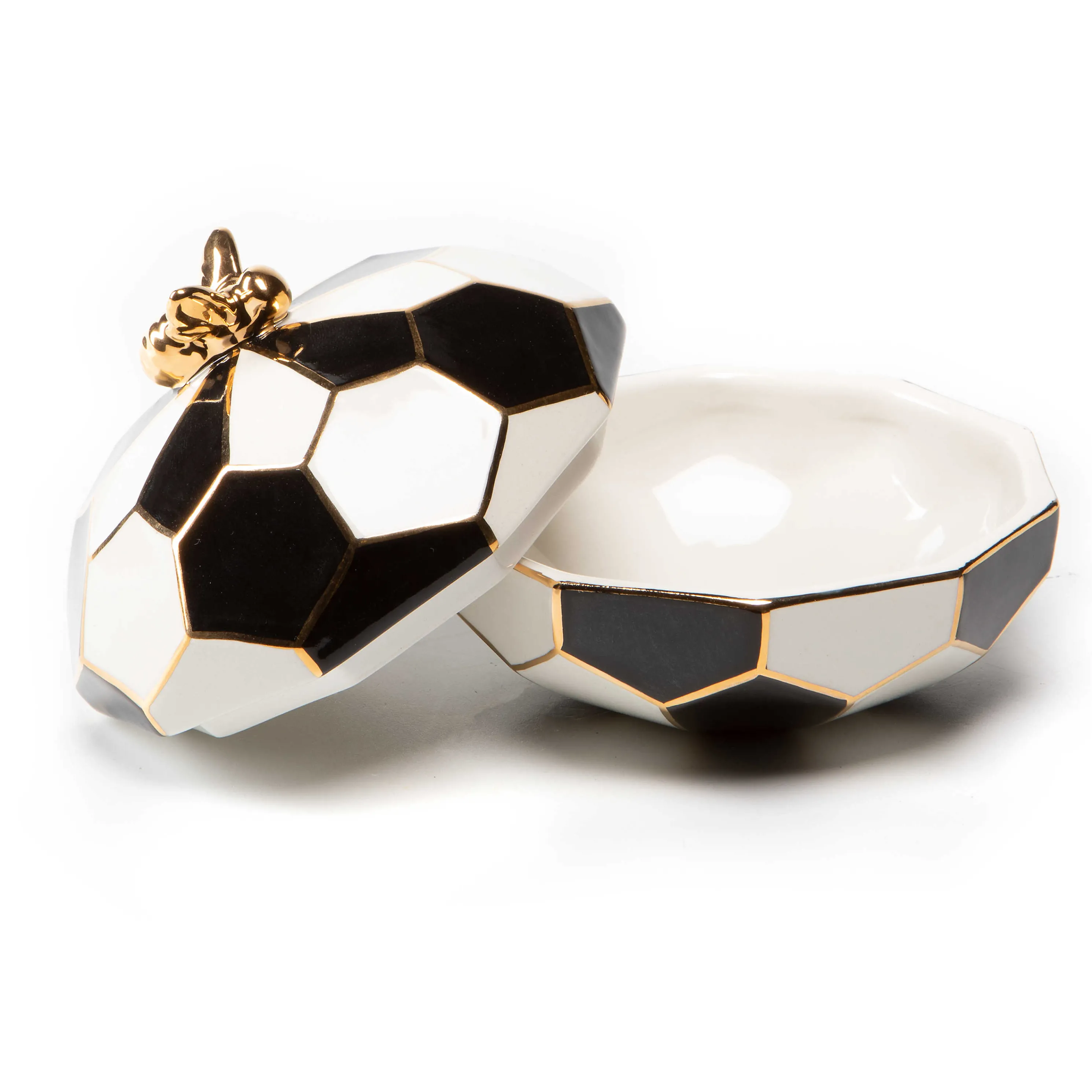 The Ceramic Queen Bee Trinket Dish Stores With Style. Decorated In A Modern Black And White Hive Pattern, Trimmed With Gold Lustre, It’S Embellished With A Buzz-Worthy Bee On Its Lid.