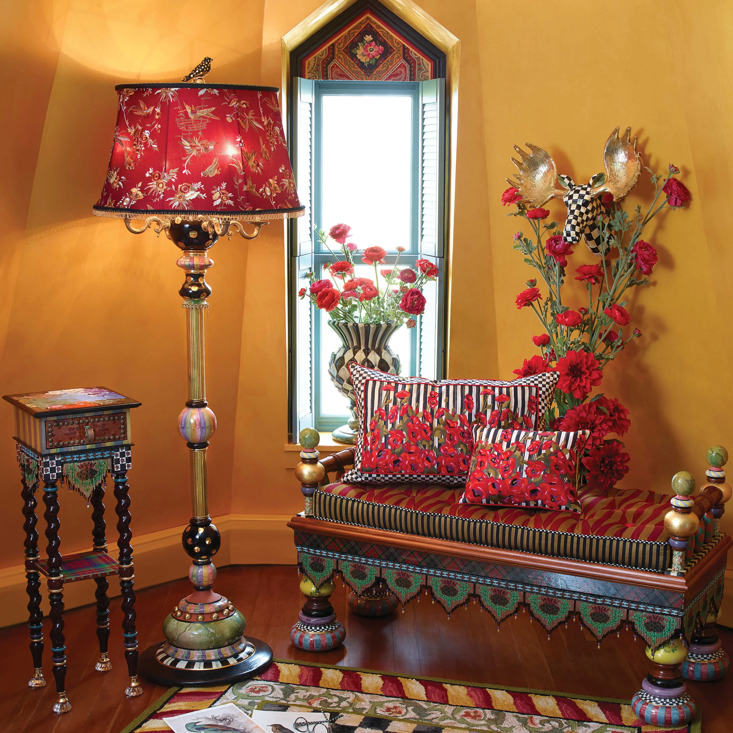 A Bona Fide Star In The Theatre Of The Absurd. Go Ahead, It’S Ok To Stare At This Over-The-Top Conversation Starter, Decorated By Our Master Artisans In A Long List Of Fabulous Details: Hand-Painted Faux Marbling, Checks, Dots, Gold Leaf, Traditional Scottish Tartan And Florentine Papers, And Floral Transfers Over A Hardwood Frame. Preposterously Perfect From Top To Bottom, The Ridiculous Bench Is Supported By Handcrafted And Gold-Lustred Ceramic Feet, And Decked Out With A Sassy Sash Of Handmade Glass Beaded Fringe. If There’S A Corner Of Your Home That Could Use A Little Nonsense Now And Again, Our Ridiculous Bench Ought To Do The Trick.