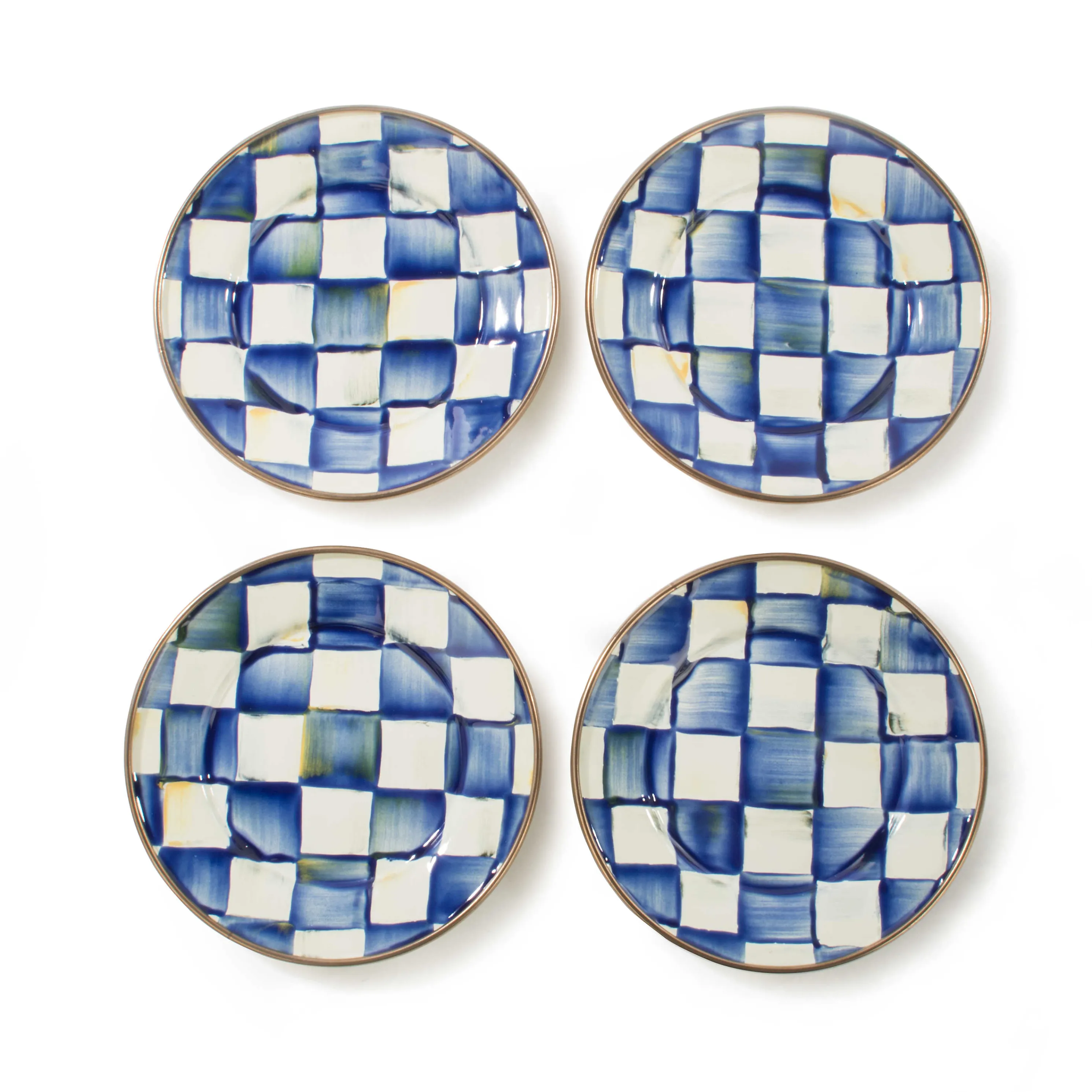 Tapas? Noshes? Tasty Treats? The Slightly Smaller Silhouette Of The Set Of Four Royal Check Appetizer Plates Offers Warm, Inviting, High-Contrast Glossy Blue Checks, Hand-Painted In A Range Of Blue Hues.