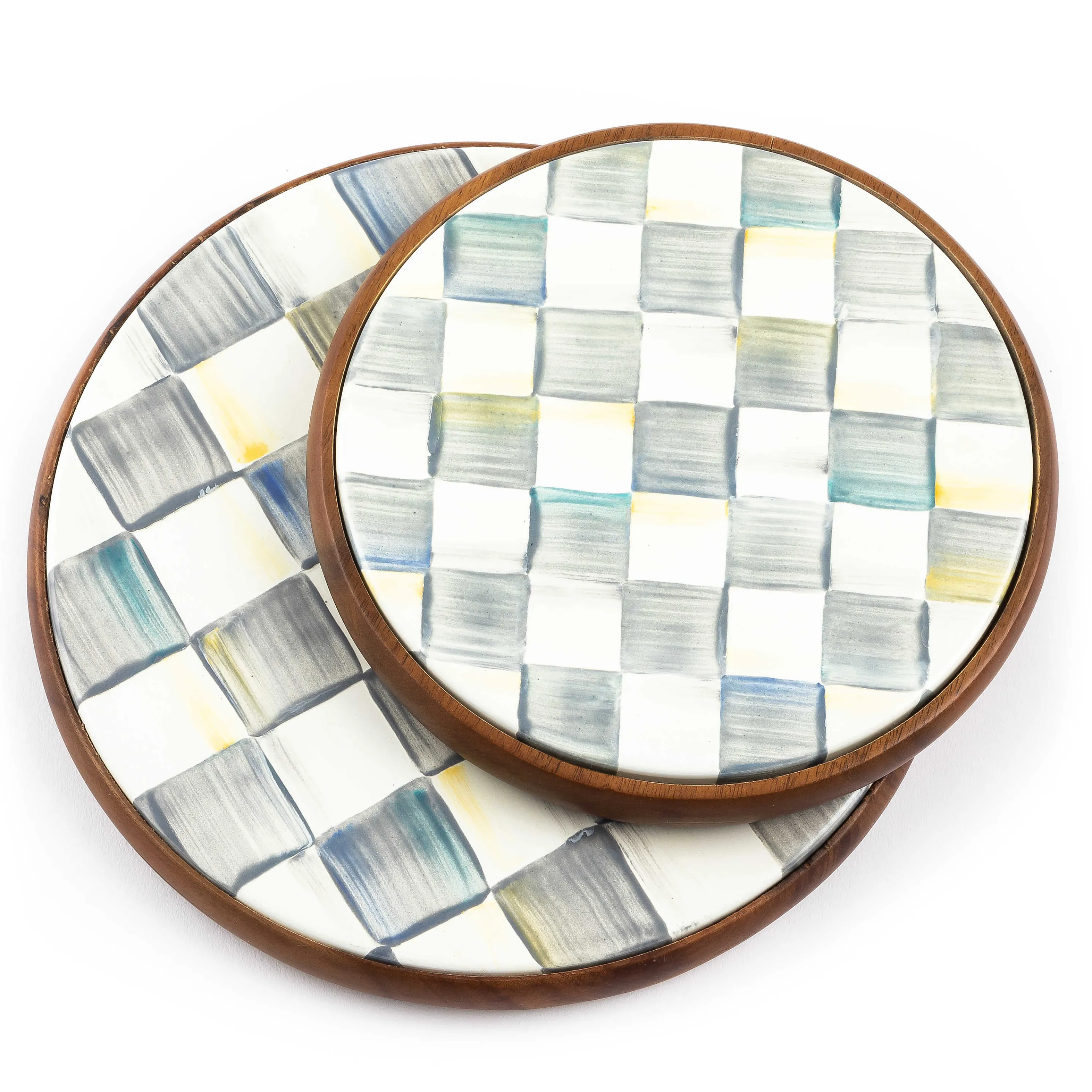 The Large Sterling Check Trivet Might Be One Of Your Kitchen’S Handiest Helpers. You’Ll Handle The Hot Stuff In Style, With An Acacia Wood Base And Hand-Painted Checks In A Range Of Grey Hues On Top, Done In Hand-Glazed Steel.
